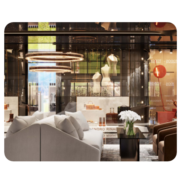 Премиум-сервис: дизайнерские интерьеры, гастрономия, бутики.